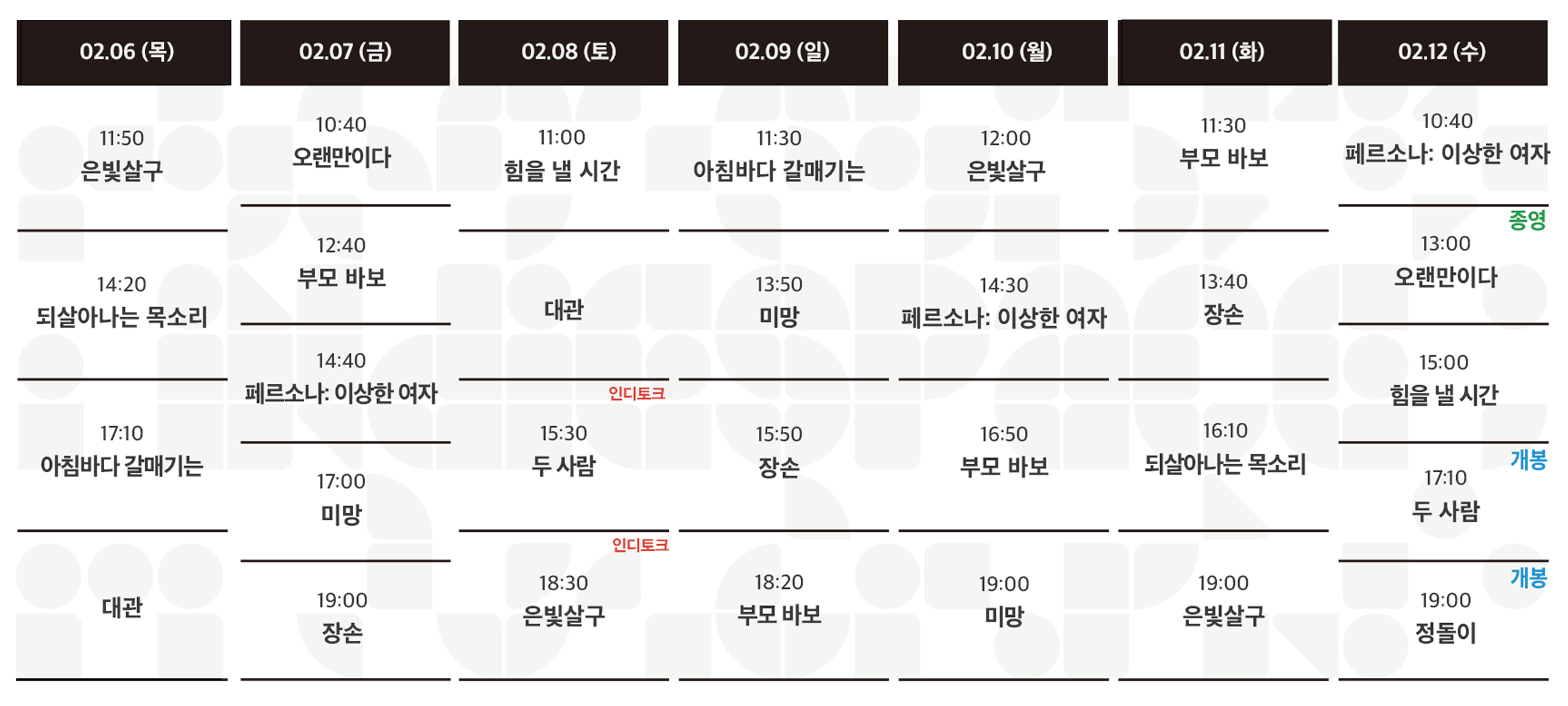 | 02.13-02.19 상영시간표 (0) | 2025.02.07 |
