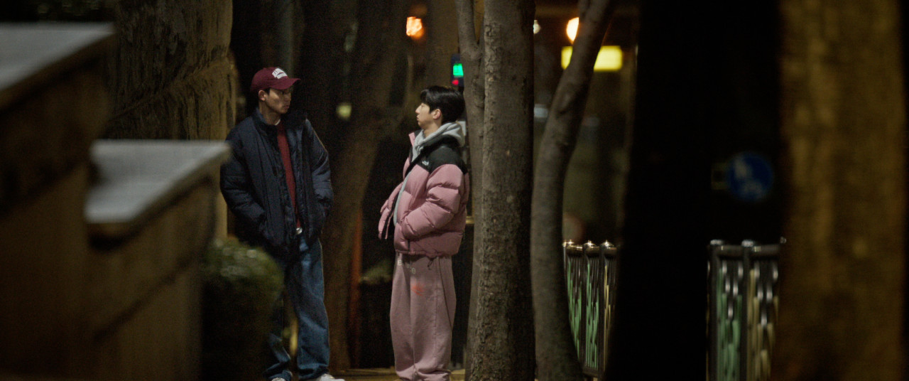 박준호: 저도 의상 감독님께 여쭤봤는데 그 모자가 실제 하버드 대학교 굿즈입니다. 그 굿즈가 빈티지가 되어 돌아다니던 것을 의상 감독님께서 소장하고 계셨거든요. 시나리오에 제가 버건디색 모자라고 지칭을 해둬서 의상 감독님께서 하버드 모자도 괜찮냐고 물어보셨어요. 그런데 대입 준비하는 인물이 하버드 모자 쓰는 게 약간 재밌는 것 같아서 그걸로 정했고요. 영준과 현택은 서로 호감이 있는 관계일 것 같아요. 그런데 사귀고 헤어지는 순간 한 명은 친구들 다 버리고 나가야 하잖아요. 그걸 감수할 만큼 저 친구와 사귀고 싶진 않지만 서로가 각자의 연애에 헛헛함을 느끼는 관계라고 생각했습니다. 친구이면서 잠재적인 파트너가 될 수 있는 게이 커뮤니티의 특성인 것 같아요.