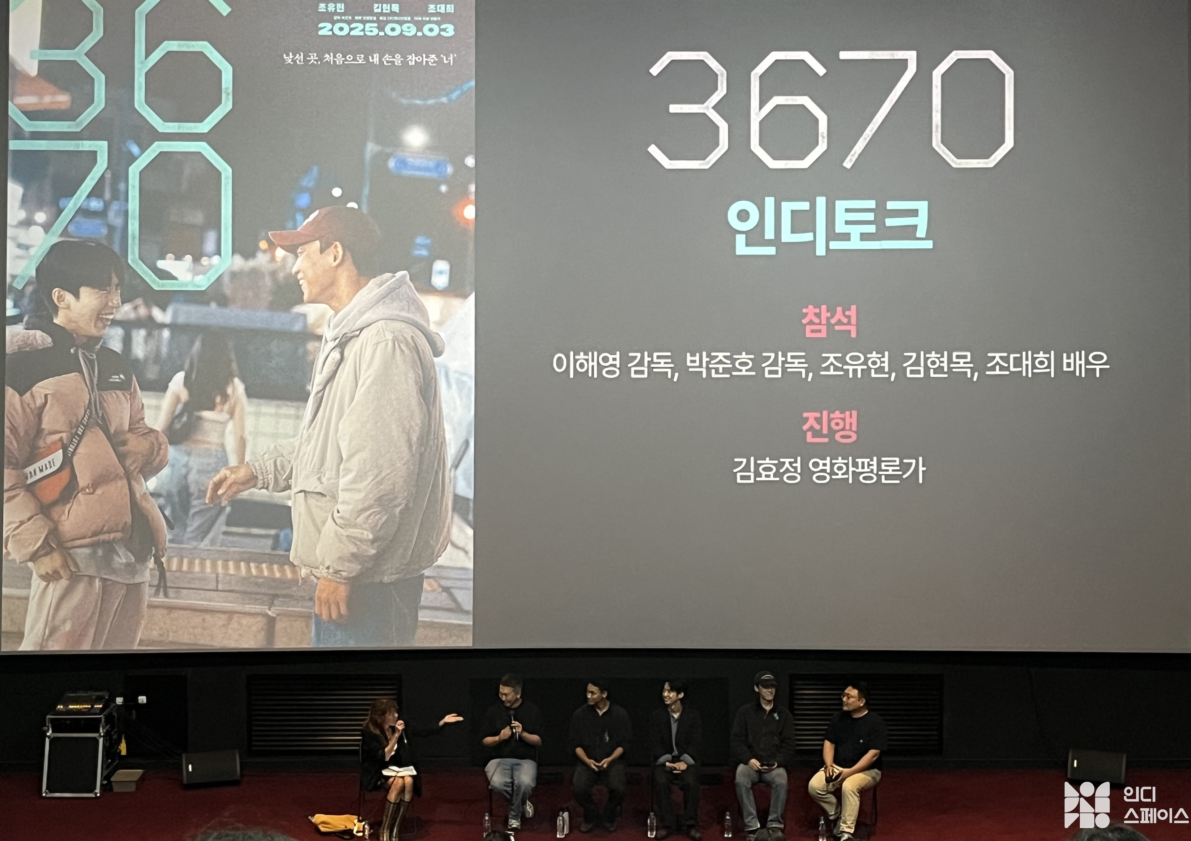 박준호: 인디스페이스가 저희 집에서 10분 거리라 오는 게 너무 편했는데요. 오늘 관객분들도 많이 와주셨는데요. 지금 정부 할인권 사업을 진행하고 있습니다. 〈3670〉뿐만 아니라 좋은 영화들 많이 상영 중이니까 인디스페이스에서 많이 영화 봐주세요. 감사합니다.