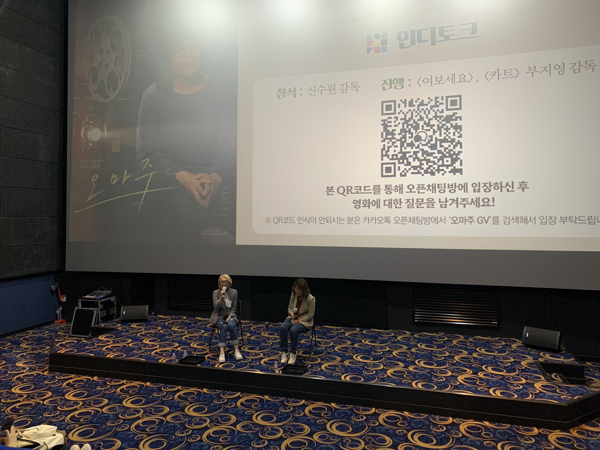 부지영 감독(이하 부지영): 안녕하세요, 저는 오늘 GV 진행을 하게 된 부지영이라고 합니다. 옆에는 〈오마주〉를 연출한 신수원 감독님 나오셨습니다.