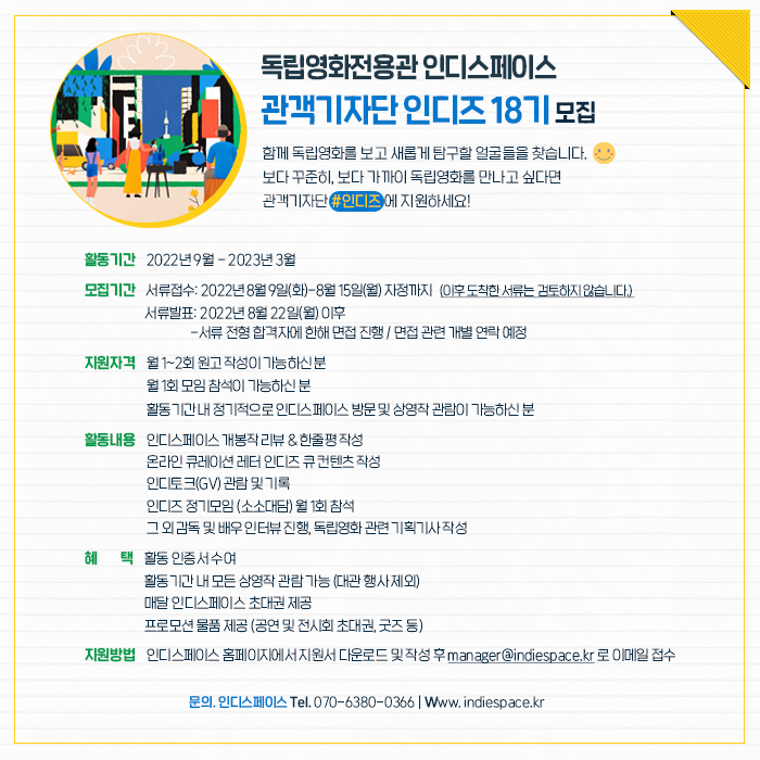 독립영화전용관 인디스페이스 관객기자단 인디즈 18기 모집