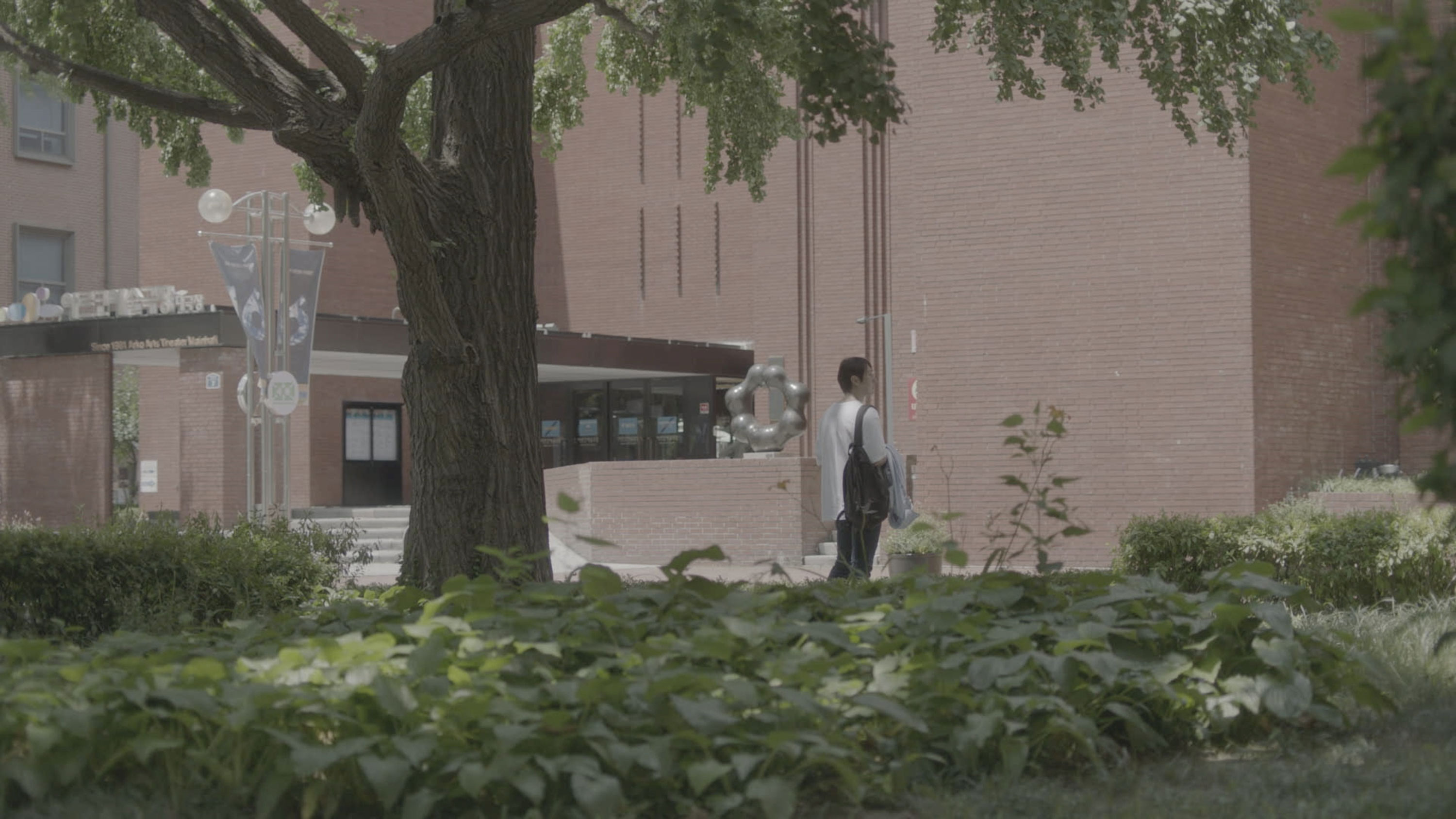 신선: 병수가 집에 가던 길에 두 사람을 우연히 만났잖아요. 10년 만에 마주치고 나서는 뭔가 쓸 게 생각났기 때문에 저는 다시 찾으러 갔다고 생각했는데 그걸 자세하게 보여주지는 않았고요. 캔 질문도 많이 주셨는데 콜라 캔이 돌고 돌아 다시 개미집 앞으로 딱 도착하잖아요. 원래 중순이 마시려던 콜라를 은유가 가지고 나가고 다시 어디선가 콜라 캔이 굴러 다니다가 학생들로 인해서 다시 성원에게 오게 한 것은 씬의 연결적인 문제도 있고 세대를 잇는 어떤 장치이기도 해요. 이런 별거 아닌 일들이 우리 일상에서 흔하게 일어나는데 그걸 우리가 눈치채지 못하고 있다는 뜻도 있습니다.