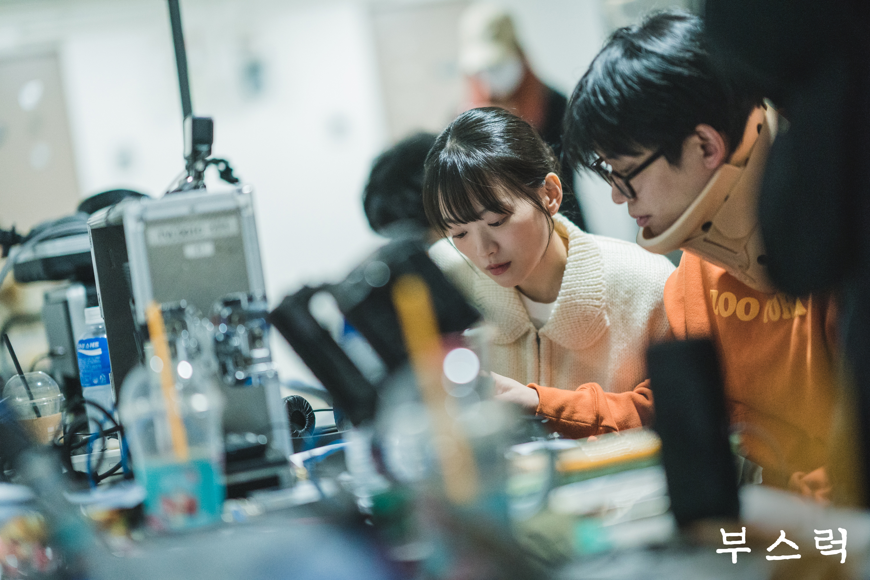 최이다: 제가 예전에 들은 이야기가 있는데, 사막에 모래 하나를 옮겼다고 생각하면 아무것도 아닌 걸 수도 있잖아요. 근데 번복해서 생각해 보면 내가 없었으면 이 모래알은 움직일 수 없었다는 얘기를 어딘가에서 읽은 적이 있어요. 소설이었던 것 같아요. 마찬가지로 저는 두 분이 지금 허무함에 대해서 얘기를 하시지만 부스럭거리는 소리도 예민하고 깊게 받아들일 수 있을 만큼 중요하게 생각하는 사람이라고 이 영화를 보면서 느꼈거든요. 현장에서도 느꼈어요. 현장 얘기를 좀 이어서 하자면 제가 스태프로서 카메라맨에 대해서 문제 제기를 한다는 건 사실 많은 현장에서 이루어질 수가 없는 일이에요. 특히 사회적 이슈가 될 수 있거나 논란이 될 수 있다, 아니면 뭔가 이렇게 해석될 여지가 있는 것 같다고 말하는 거는 완성되지도 않은 영화에 대해서 월권을 취하는 것처럼 들릴 수도 있는 상황이거든요. 일단 제가 그런 고민을 했다는 것 자체는 〈부스럭〉에 굉장히 애정을 갖고 참여를 하고 있었기 때문인 것 같아요. 그런데 그것보다도 큰 이유는 제가 말씀을 드렸을 때 이 두 감독님이 경청을 해 주실 거라는 믿음이 있었기 때문이에요. 긴급한 상황이었지만 유동적으로 뭔가 바꿀 수 있었다는 건 달리 말하면 두 감독님이 경청을 해주신다는 뜻일 수 있을 것 같아요. 믿음이 있었기 때문에 애초에 제가 말씀을 드린 거였어요. 부스럭거리는 소리도 잘 들을 수 있기 때문에.