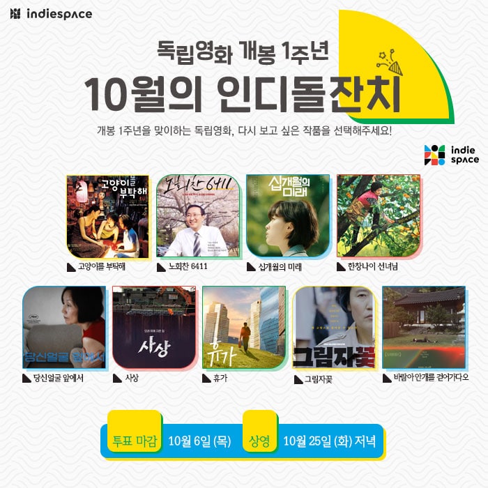 | [인디돌잔치] 2022년 11월 상영작을 선정해주세요 (0) | 2022.11.03 |