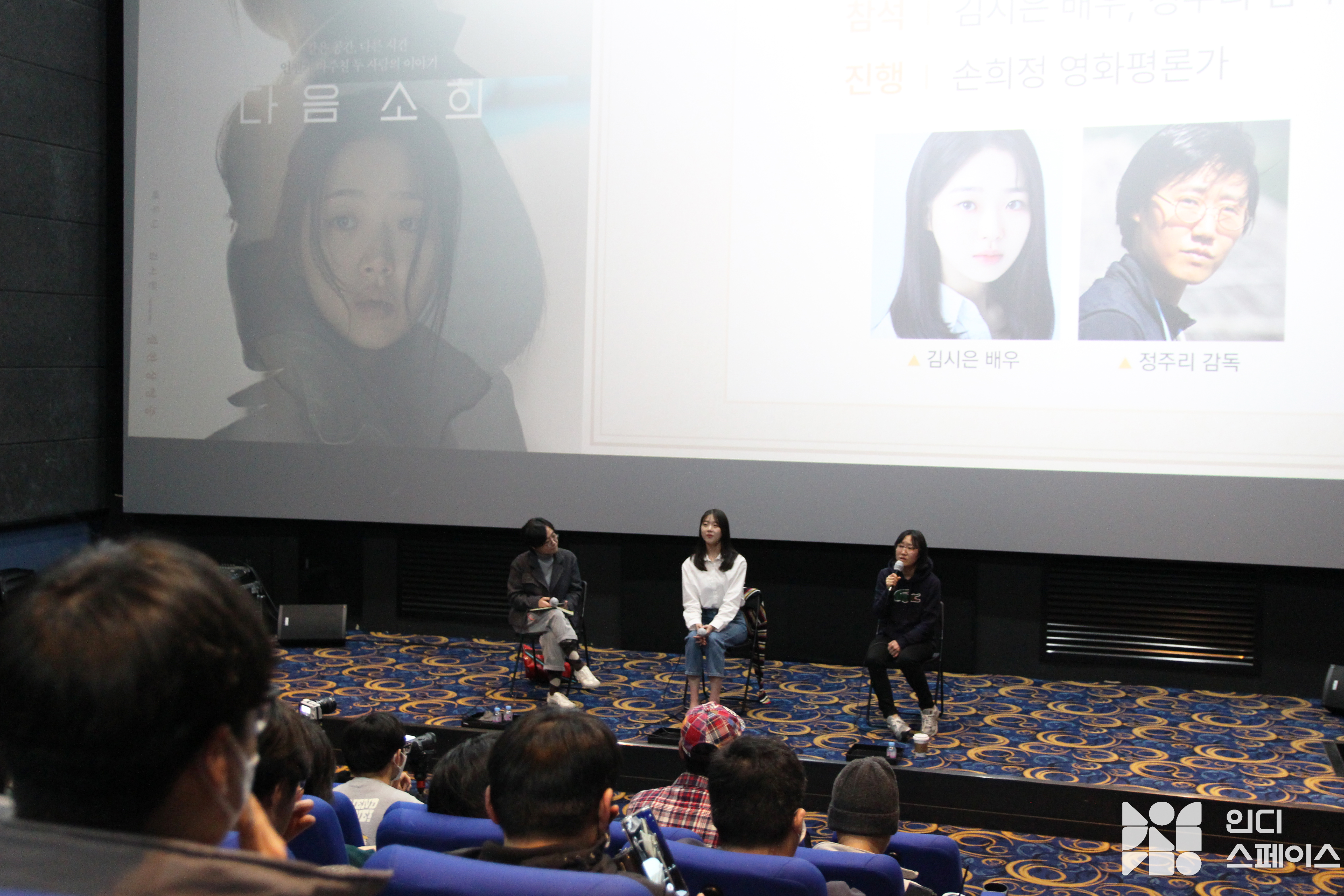 김시은 : 귀한 시간 내주셔서 너무 감사드립니다. 처음 <다음 소희>의 시나리오를 읽었을 때, 이 이야기가 세상에 알려졌으면 좋겠다고 생각했어요. 그러면 조그마한 변화가 일어날 수 있지 않을까 생각했는데, 오늘 이렇게 많은 관객분들이 모인 것만 해도 조금 더 괜찮은 세상이 될 수 있지 않을까 기대해보게 되는 것 같아요. 영화가 그리는 문제는 누구 한 명의 문제라고 할 수는 없지만, 누구 한 명들의 문제이기도 하잖아요. 각각의 개인이 변해야, 사회의 변화가 있을 거라고 생각하거든요. <다음 소희>가 여러분들의 마음에 조그마한 변화를 일으켰으면 좋겠습니다. 모두 조심히 들어가세요. 감사합니다.
