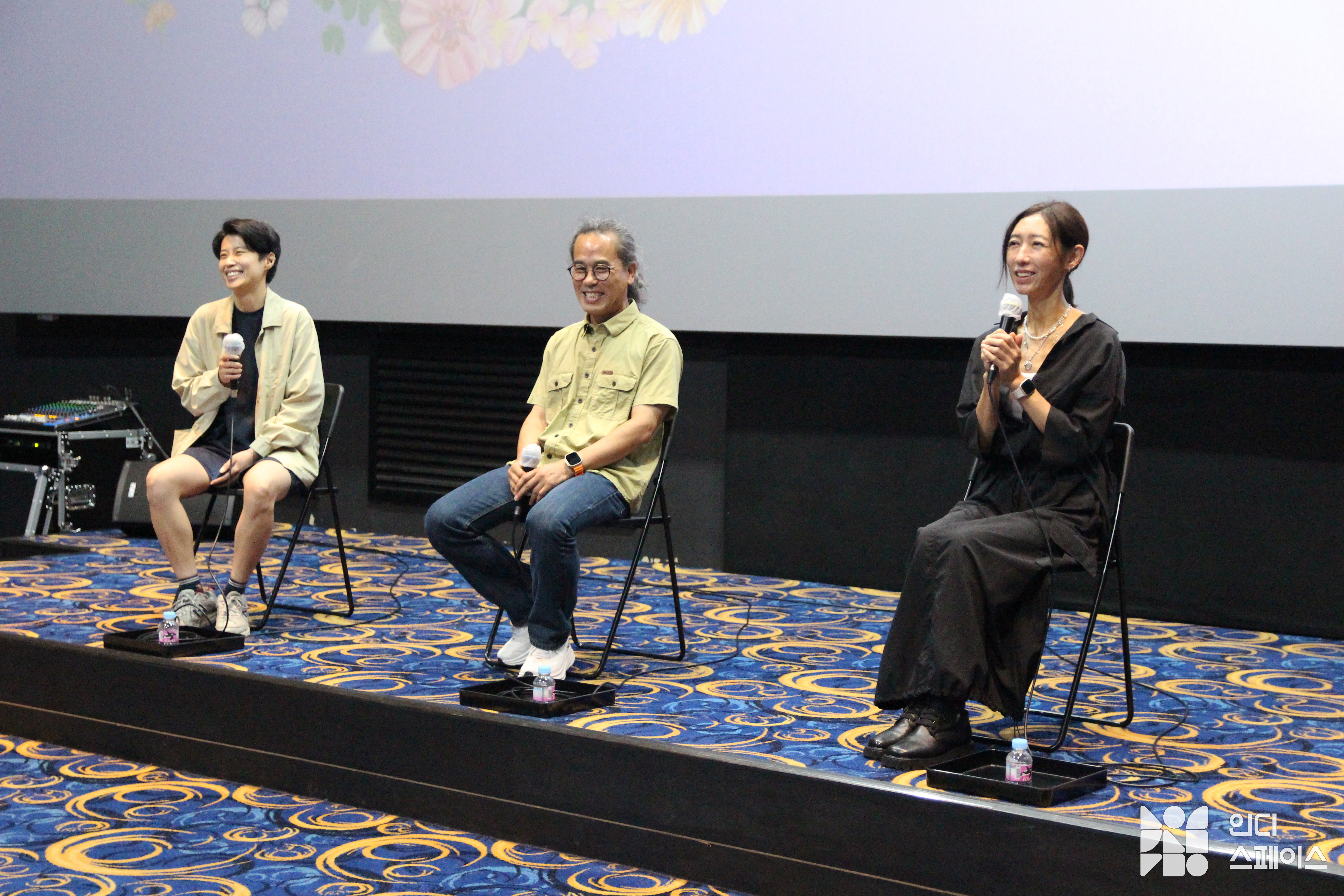 관객: 제가 말은 잘 못하는데요. 느낀 게 조금 있어서 말씀을 드려보자면 저는 원래 할머니 이야기에 쉽게 눈물을 흘리는 사람이라서 손수건을 가져왔거든요. 근데 생각보다 굉장히 많이 웃었고요. 대신 가족들 생각이 많이 났고요. 되게 벅찬 영화였어요. 독립영화나 예술영화를 보다 보면 상업영화랑 다르게 스토리라인이 뚜렷하지 않으니까 내가 영화를 어떻게 잘 따라갈 수 있을까 고민을 하면서 보게 되는데 이번에는 그런 생각 없이 그냥 쭉 따라가면서 봤던 것 같아요. 그래서 너무 좋고요. 전에 인디스페이스에서 GV를 했을 때는 모더레이터님이랑 감독님이랑 말씀을 많이 하셔서 그냥 보는 입장이었다면 오늘은 아예 관객과 대화하는 포지션이어서 ‘오늘은 말할 수 있겠다’고 생각했습니다. 그래서 정말 귀한 시간이랑 귀한 발걸음 해주셔서 너무 감사하다는 말씀드리고 싶었습니다.