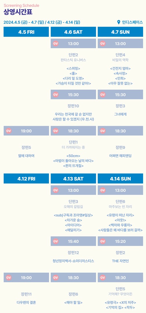 일정 2024년 4월 5일(금) - 7일(일), 12일(금) - 14일(일)