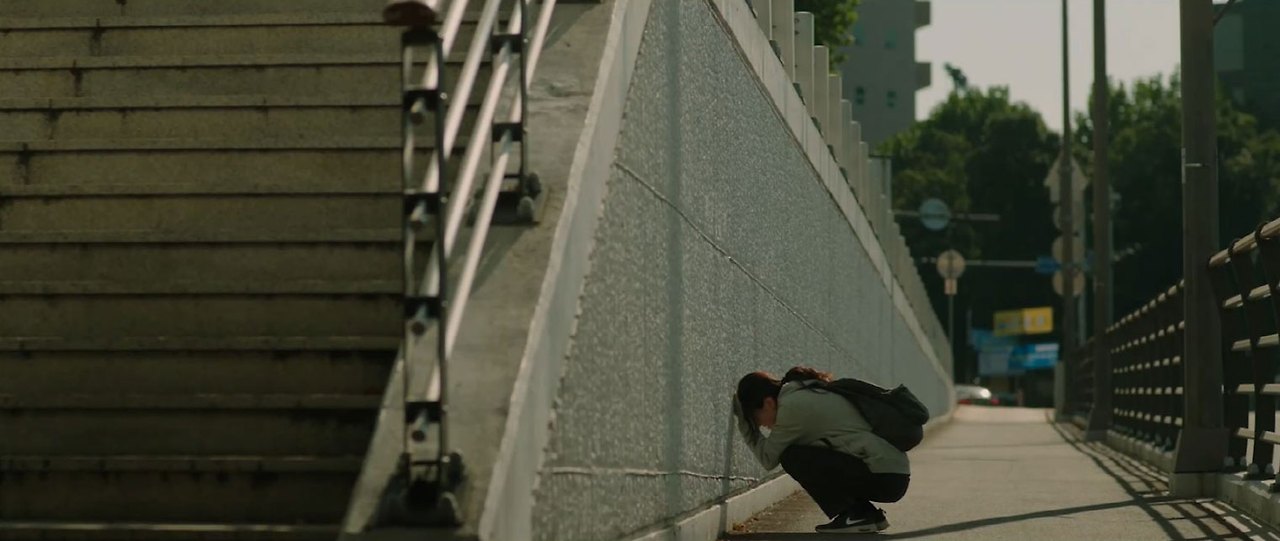 차한비: 저는 오늘 꼭 여쭤보고 싶었던 질문 중에 하나가 영화에 등장하는 울음에 관해서 한번 이야기를 나누면 좋겠다라는 생각을 했거든요. 진영이 울음을 터뜨리는 장면들이 있고 영화에서 그 울음을 보여주기로 한 순간과 보여주지 않기로 하는 순간이 있는데 보여주지 않기로 하는 순간이 조금 궁금했어요. 떠오르실지 모르겠는데 구치소에 들어간 아빠를 만나서도 얘기할 때 분명히 진영이 우는 것 같은데 고개를 돌리잖아요. 근데 카메라의 얼굴이 담기지 않는 방향으로 고개를 돌리고 이제 유학원에 가서 직원과 대화할 때도 카메라는 지금 진영이 뒤통수를 비추는데 유학원 직원이 괜찮으세요라고 물어보는 걸로 이제 미루어 짐작하던데 진영이 아마도 울고 있었을 것 같다는 생각이 들었어요. 그리고 보여지는 두 번의 눈물이 나오는데 하나는 아빠 앞에서 이제 터져 나온 눈물이고 유학원의 계단 밑에 내려와서 그 두 번의 눈물을 제외하면 나머지 순간에는 좀 그 울음을 안 보여주기로 하신 것 같거든요. 감독님은 어떤 고민으로 이렇게 선택하셨는지 궁금했어요.